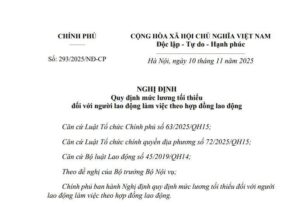 Ngày 10/11/2025, Chính phủ đã ban hành Nghị định 293/2025/NĐ-CP quy định mức lương tối thiểu đối với người lao động làm việc theo hợp